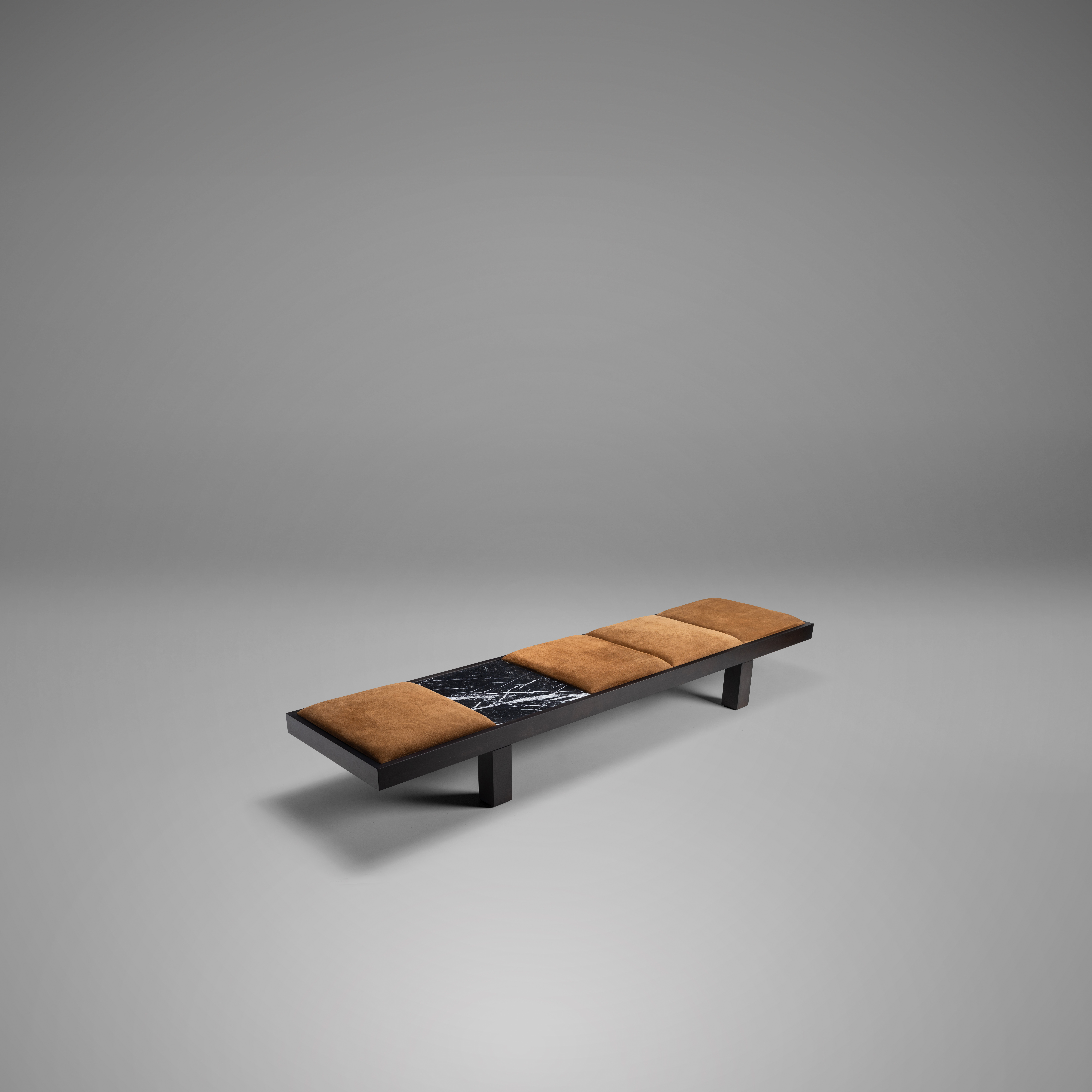 Com design imponente inspirado no design Midcentury, o Banco Atlas propõe uma estética elegante aos ambientes. A estrutura do banco em madeira maciça em cortes retilíneos sustenta o assento de módulos estofados, que garantem conforto sem comprometer a sobriedade visual. O detalhe da mesa em mármore oferece uma oportunidade adicional de personalização de combinações e texturas, agregando mais complexidade estética à peça. A combinação entre madeira, pedra e tecido valoriza a autenticidade dos materiais naturais e reforça a personalidade contemporânea e atemporal de aplicabilidade versátil.