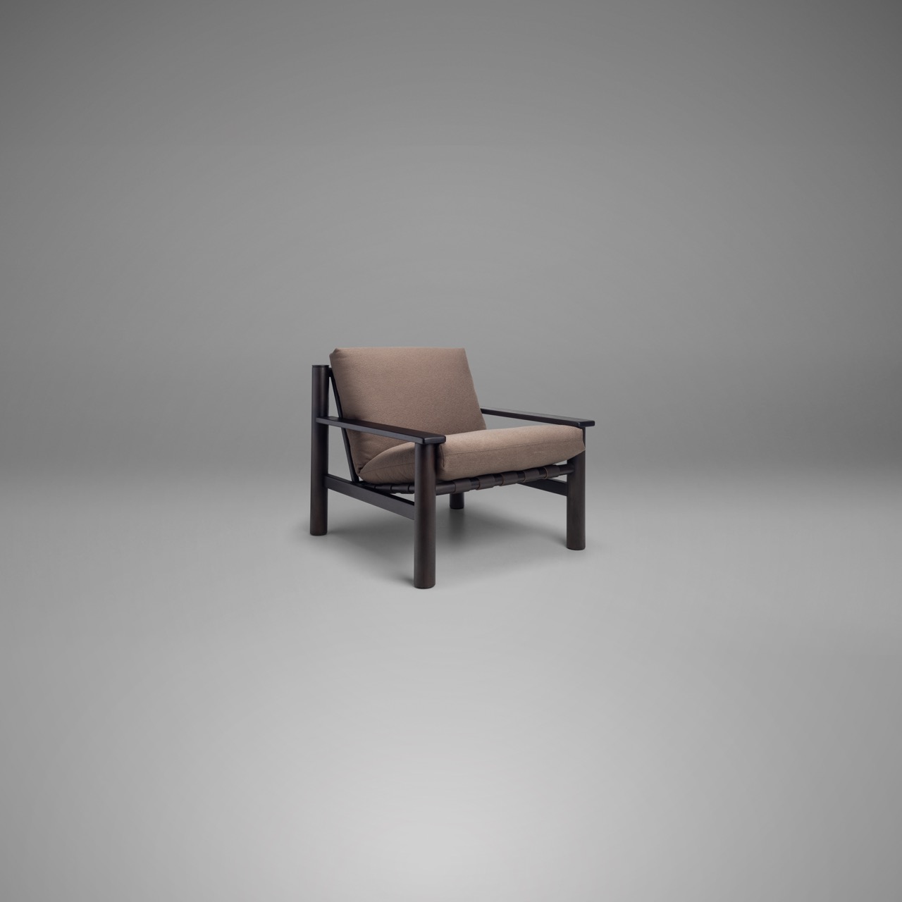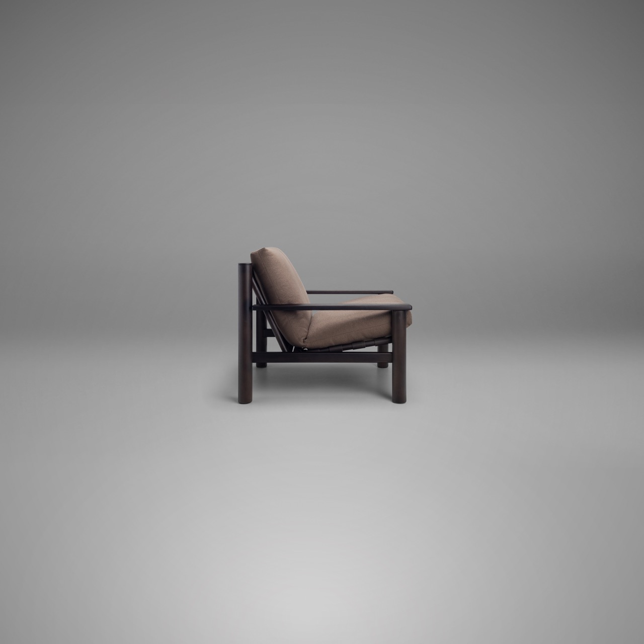 A Poltrona Ana é traçada por linhas robustas e bem definidas, que equilibram estrutura sólida e acolhimento. Sua base em madeira cilíndrica revela força e estabilidade, enquanto os braços retos reforçam a imponência do desenho. As almofadas de encosto e assento volumosas, oferecem suavidade e bem-estar. O detalhe dos palitos de madeira no espaldar da poltrona dispostos em ângulo imprimem leveza visual e sofisticação, destacando o cuidado artesanal e a atenção aos acabamentos. O resultado é uma peça que referencia o movimento Japandi, unindo expressão formal e funcionalidade com elegância atemporal. Versátil e refinada, a poltrona Ana se adapta com naturalidade a diversos ambientes.